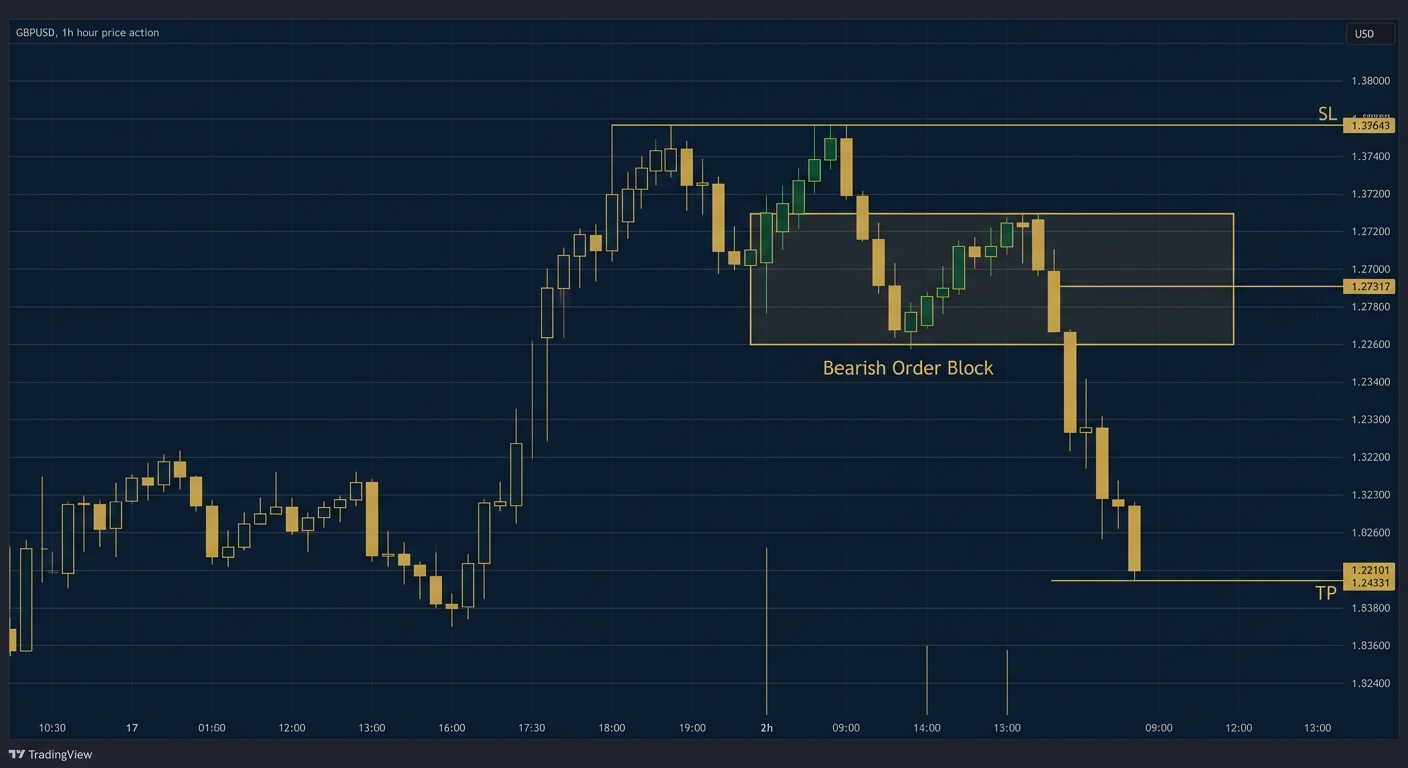 - Stop loss above the order block